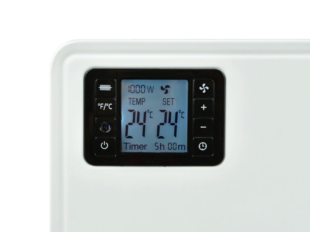 Dispune de un afișaj LCD iluminat, care permite citirea ușoară a tuturor parametrilor. De asemenea, pachetul include o telecomandă pentru controlul tuturor funcțiilor, aspect ce crește și mai mult confortul utilizării radiatorului.