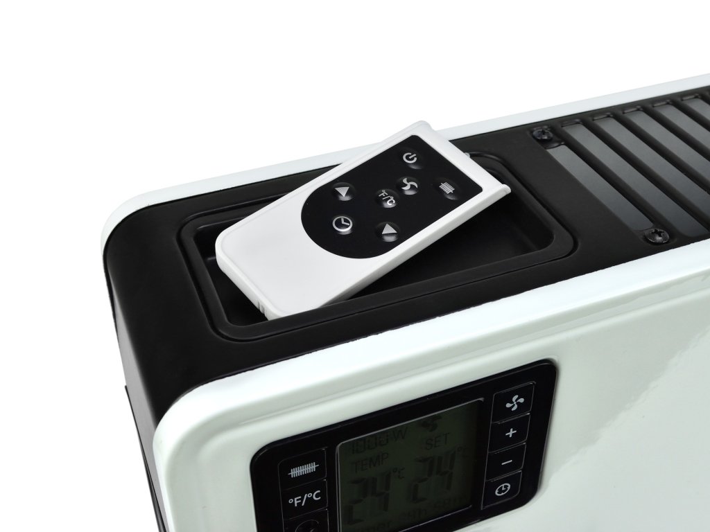 Radiator convector cu afișaj LCD și telecomandă G80441 este un dispozitiv extrem de util pentru zilele reci de toamnă și iarnă. Radiatorul crește rapid temperatura în orice cameră și, datorită designului atent și culorii albe neutre, se integrează perfect în orice interior, fie că e vorba de sufragerie, dormitor, bucătărie sau birou.