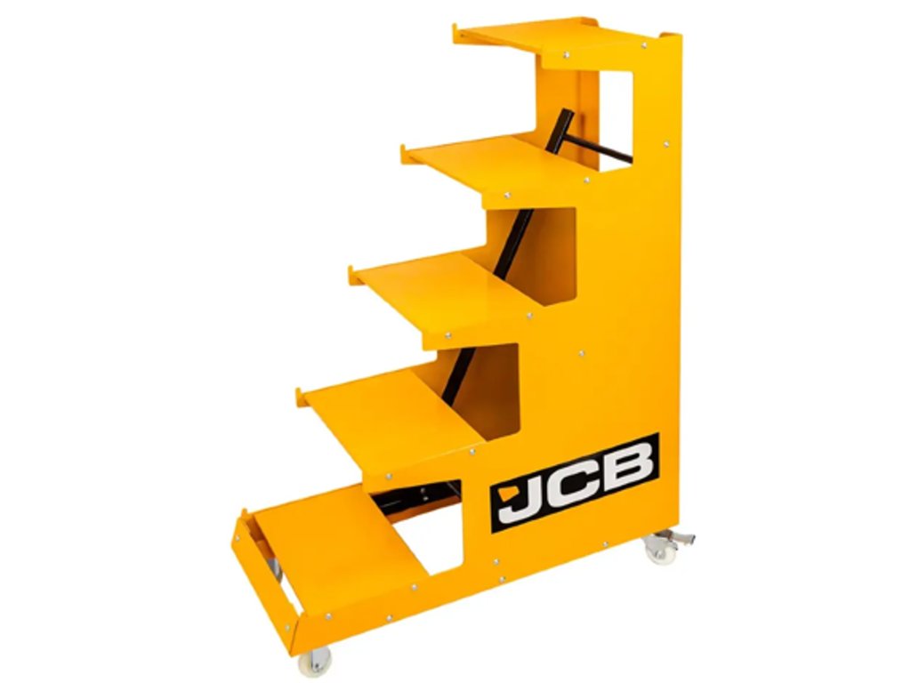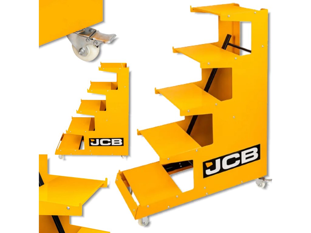 Raft mobil de afișare JCB, 5 rafturi, capacitate de încărcare 300 kg, 135 × 100 × 40 cm, 4 roți
