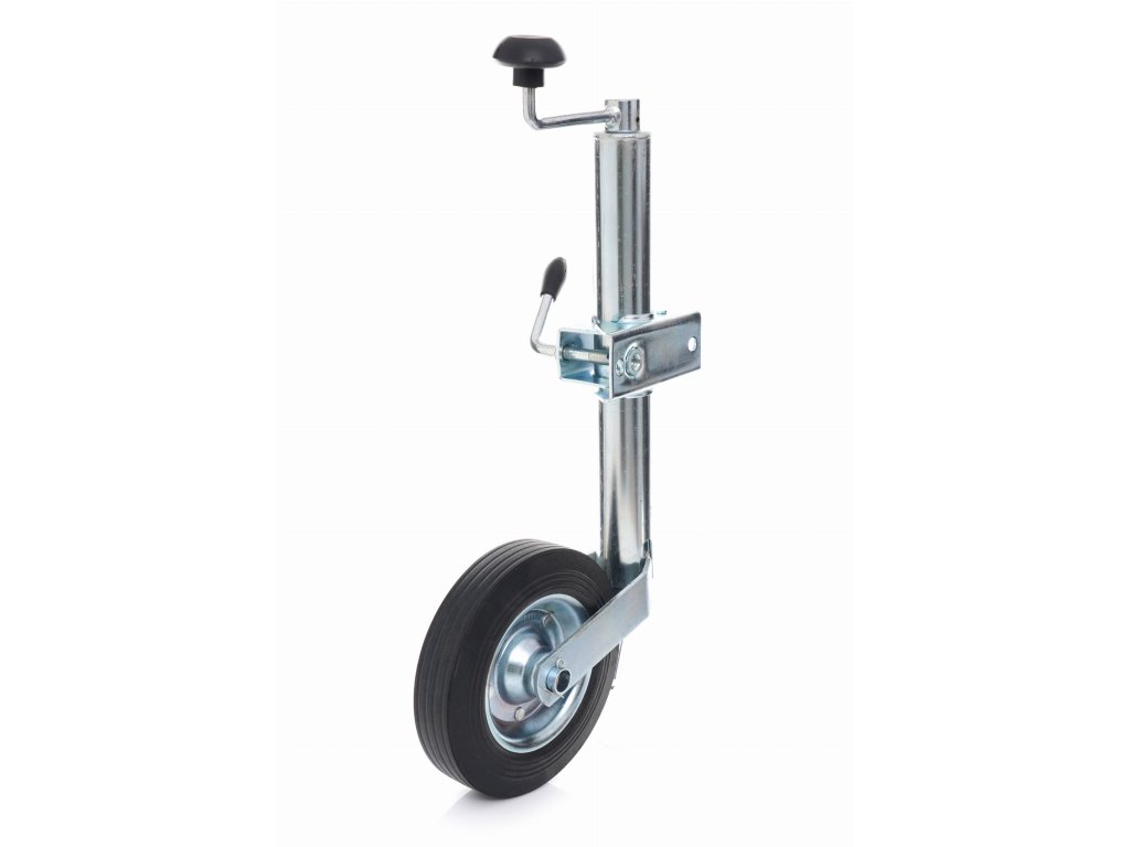Roata cu suport din oțel marca Kraft&Dele model KD469 pentru remorci cu clemă compatibilă. Permite utilizarea mult mai ușoară a remorcii. Cu ajutorul acesteia, remorca poate fi detașată ușor de cârlig, manevrată separat sau refixată pe cârlig.