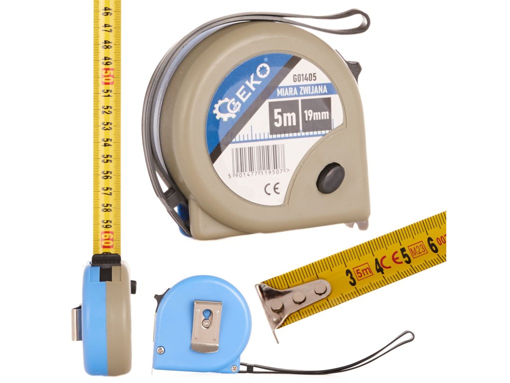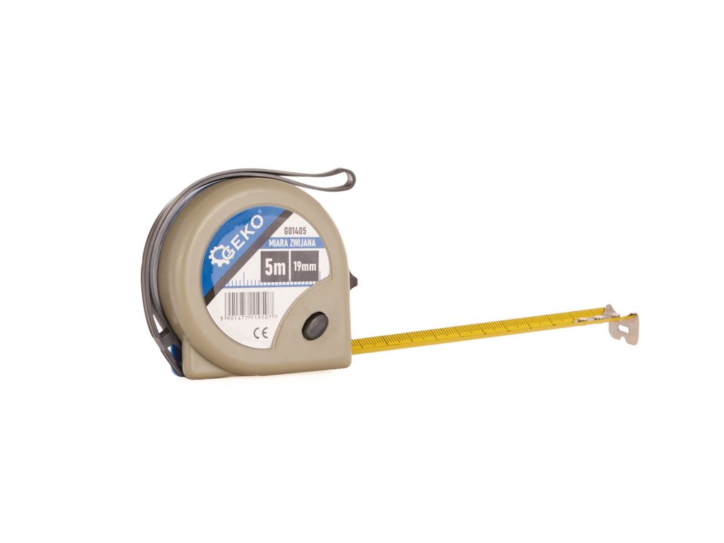 Ruleta este încastrată într-o carcasă robustă din plastic ABS, care este rezistentă și ușor de manipulat. Scala netedă și ușor de citit facilitează citirea valorilor măsurate, în timp ce butonul de frânare acționat cu degetul mare permite o utilizare ușoară și blocarea sigură a benzii în timpul măsurării.