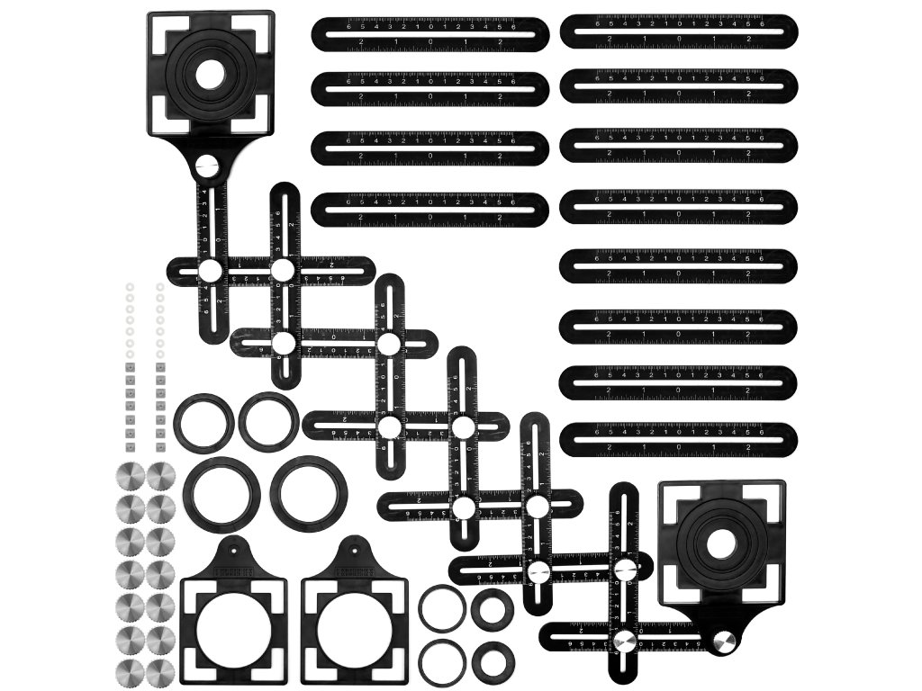 Până la 17 elemente: În ambalaj: 12 brațe de măsurare + dispozitiv pentru marcarea găurilor cu diametre de 25mm, 40mm, 45mm, 55mm, 75mm!