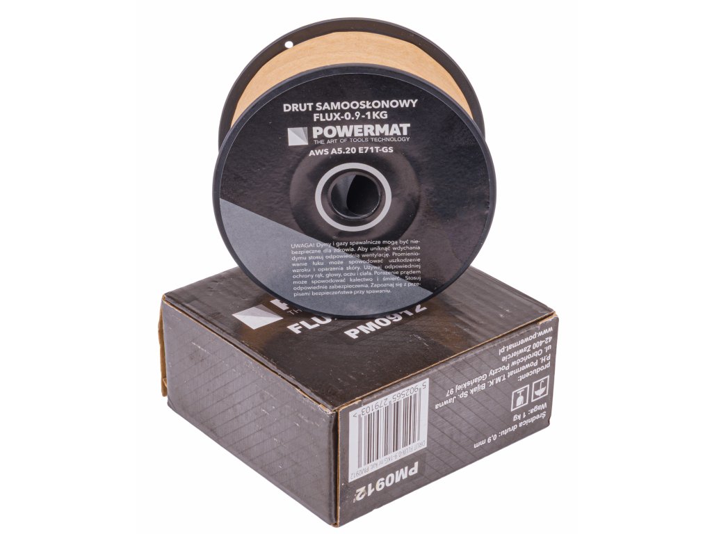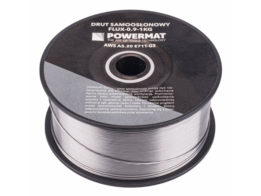 Sârmă de sudură cu miez (auto-protejat) de 0,9 mm și greutate de 1 kg E71T-GS de la Powermat este destinată sudării oțelurilor carbon obișnuite și de înaltă rezistență, a căror rezistență nu depășește 510 MPa.