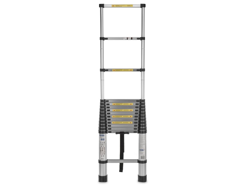 Designul telescopic permite extinderea și retragerea secțiunilor individuale, oferind posibilitatea de a ajusta lungimea scării pentru diverse sarcini, inclusiv pentru lucrul la înălțime sau în locuri greu accesibile. Scara este echipată cu mecanisme de blocare care asigură stabilitatea și siguranța utilizării, prevenind astfel alunecarea accidentală a secțiunilor.