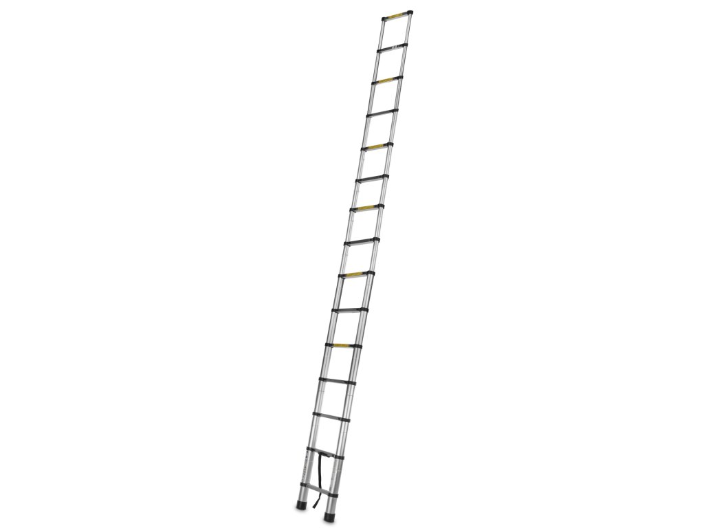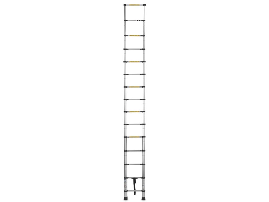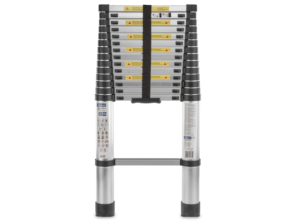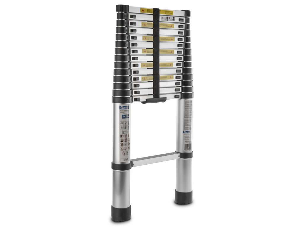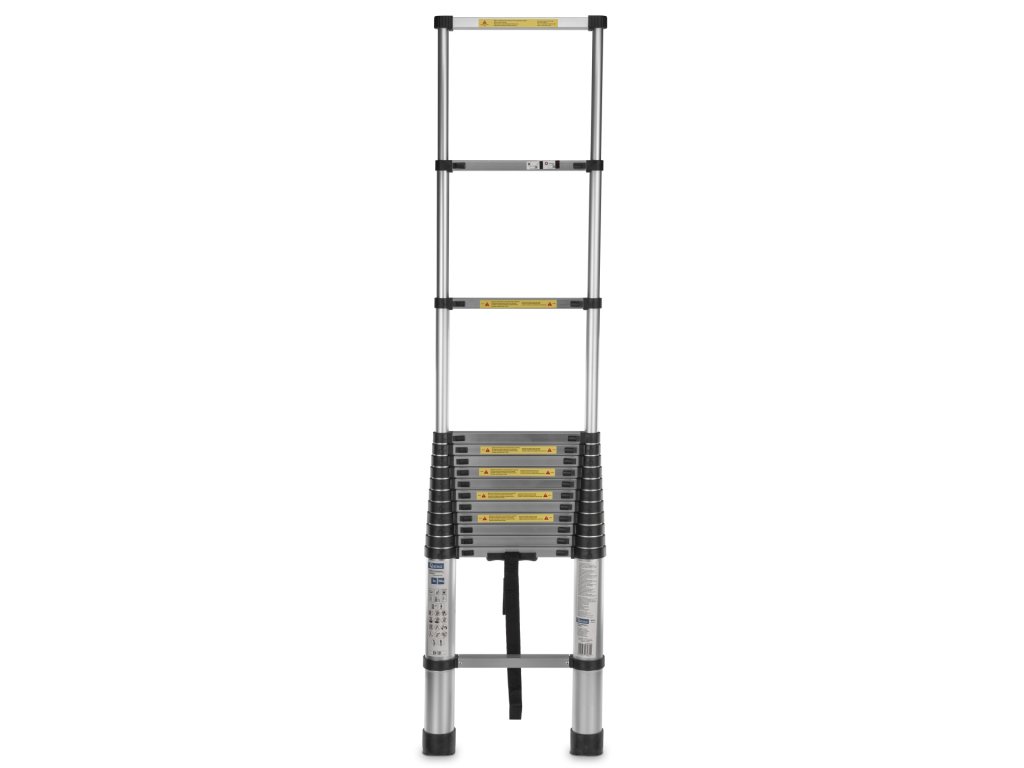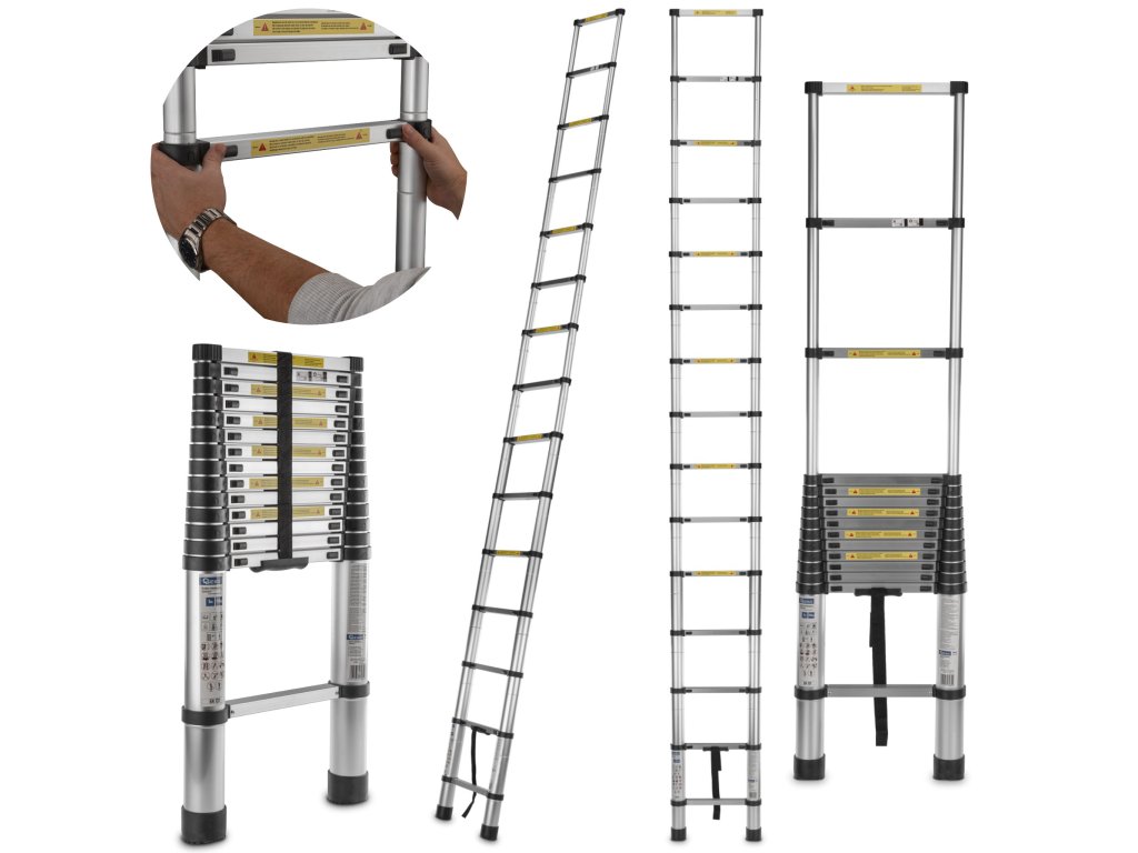Scara telescopică este formată din secțiuni care pot fi extinse și retractate cu ușurință, permițând setarea exactă a lungimii. Astfel, scara devine versatilă și adaptabilă pentru diverse sarcini, cum ar fi lucrul la înălțimi diferite sau în locuri mai greu accesibile. Fiecare secțiune este asigurată cu mecanisme de blocare, care mențin scara ferm pe loc și garantează stabilitatea și siguranța la utilizare. Aceste mecanisme previn alunecarea accidentală a secțiunilor scării.