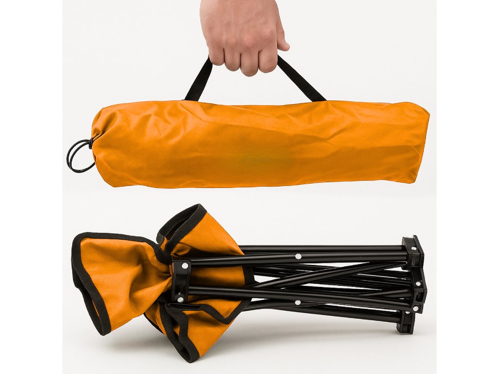 Când este pliat, scaunul ocupă un spațiu minim (600 x 110 mm) și încape într-o geantă de transport practică, ceea ce îl face ușor de transportat și îl protejează de murdărie.