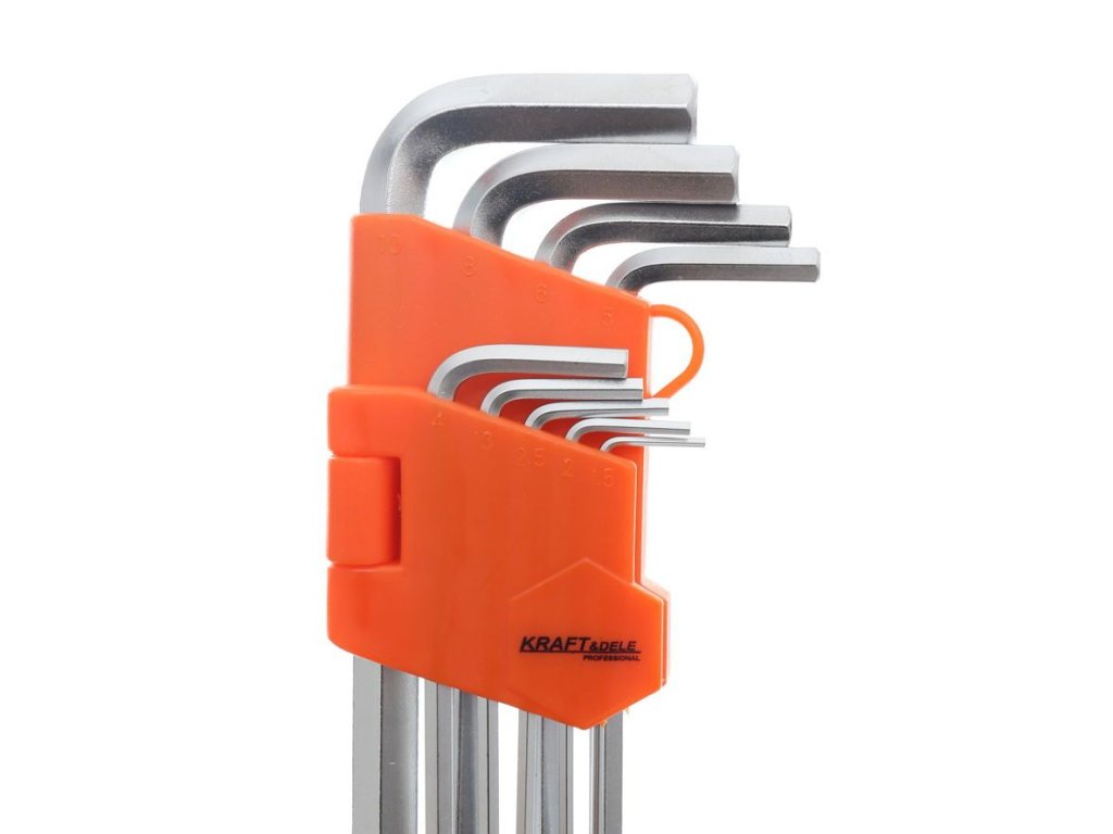 Set de 9 chei imbus rotunde KD10296, de înaltă calitate, fabricate din oțel crom-vanadiu Cr-V, recunoscut pentru durabilitate și flexibilitate.