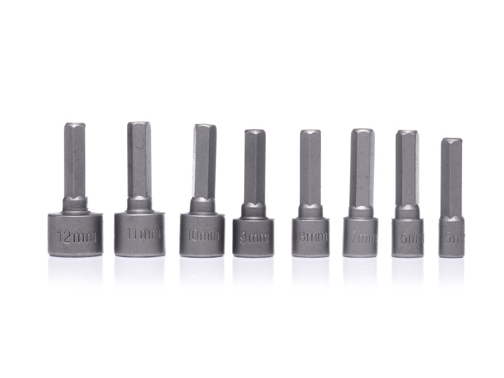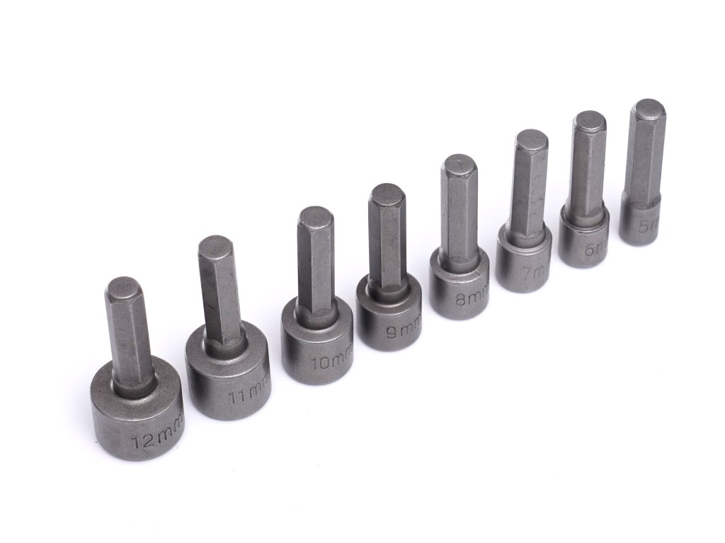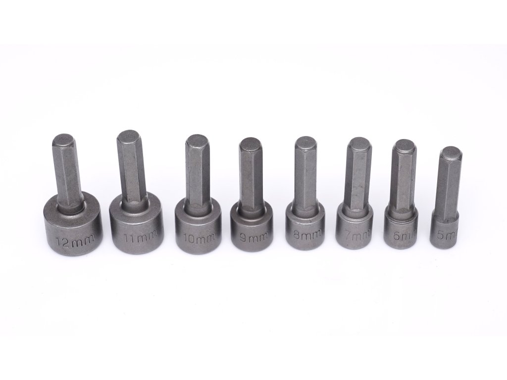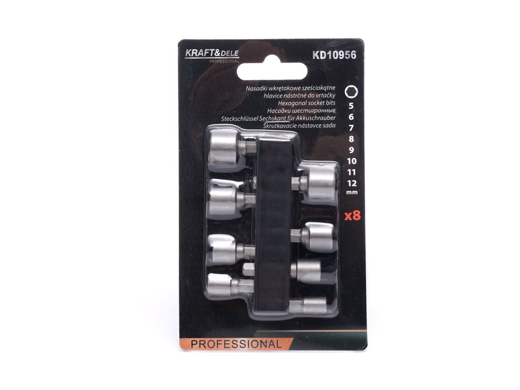 Set de tubulare hexagonale 8 piese KD10956. Set profesional de adaptoare pentru capete de șurub, 8 bucăți, marca Kraft&Dele, model KD10956. Set de reductori speciali și adaptoare pentru șurubelniță. Reducerile permit utilizarea șurubelniței cu capete hexagonale. Piesele setului sunt realizate din oțel de unelte, care asigură rezistența și durabilitatea acestora.
