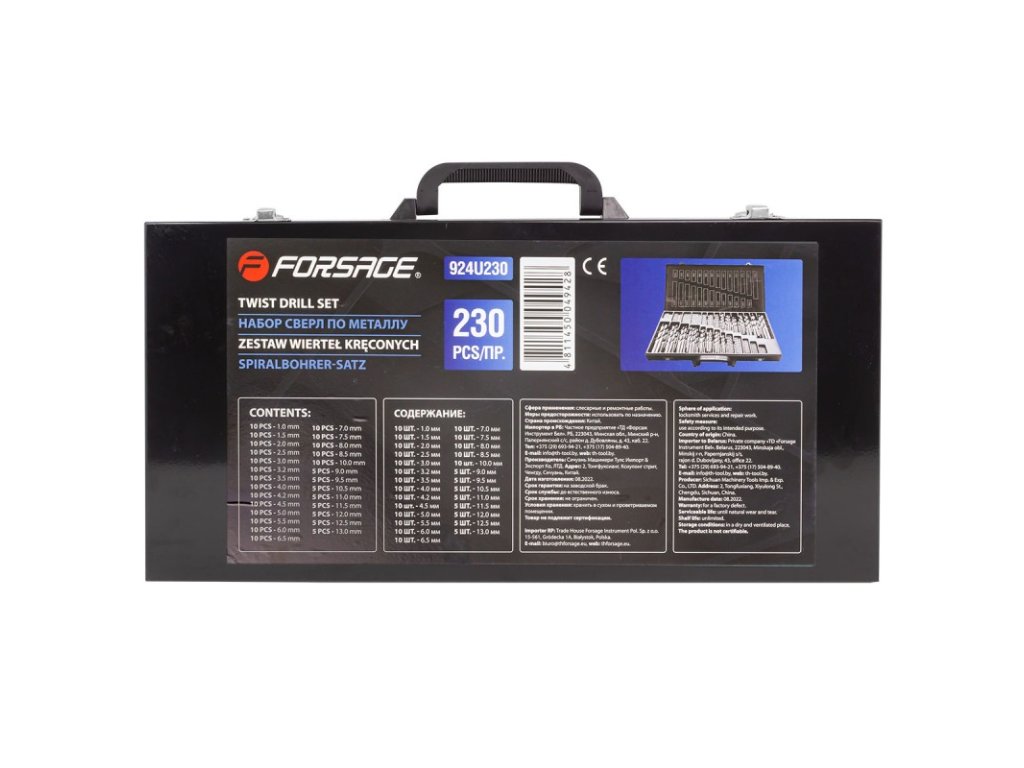 - 10 x burghie 1 / 1,5 / 2 / 2,5 / 3 / 3,2 / 3,5 / 4 / 4,2 / 4,5 / 5 / 5,5 / 6 / 6,5 / 7 / 7,5 / 8 / 8,5 / 10 mm