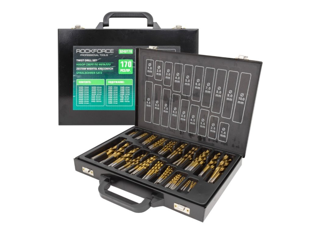 Set burghie pentru metal și lemn, 170 buc, în cutie