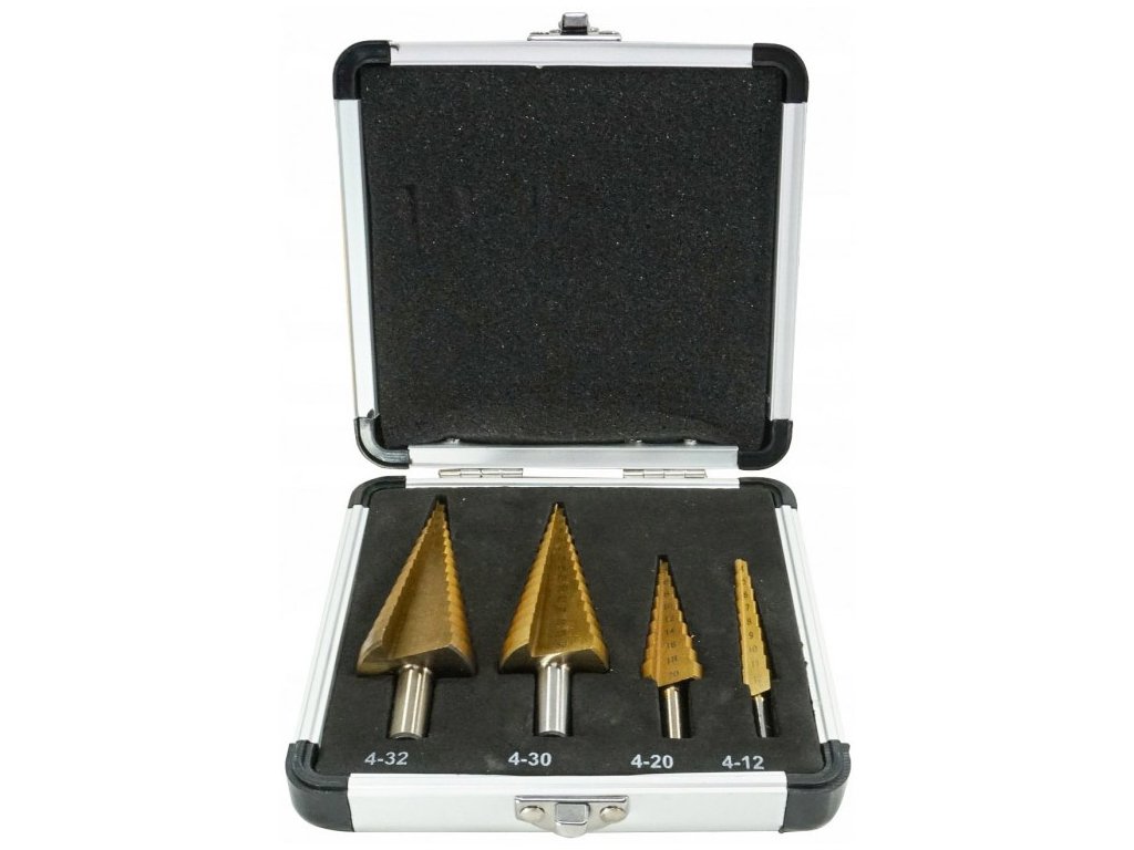 Burghie conice acoperite cu titan de înaltă calitate, realizate cu tehnologie HSS, cu tije cilindrice și numerotare lizibilă. Gama de burghie de la 4 mm la 32 mm. Potrivit pentru găurirea în metale, table de oțel cu pereți subțiri și materiale plastice. Esențial pentru centrarea, găurirea găurilor noi și extinderea celor vechi. Ideal pentru utilizare în instalații sanitare, lăcătușerie, tâmplărie. Setul este asezat intr-o cutie practica, facilitand depozitarea si transportul.