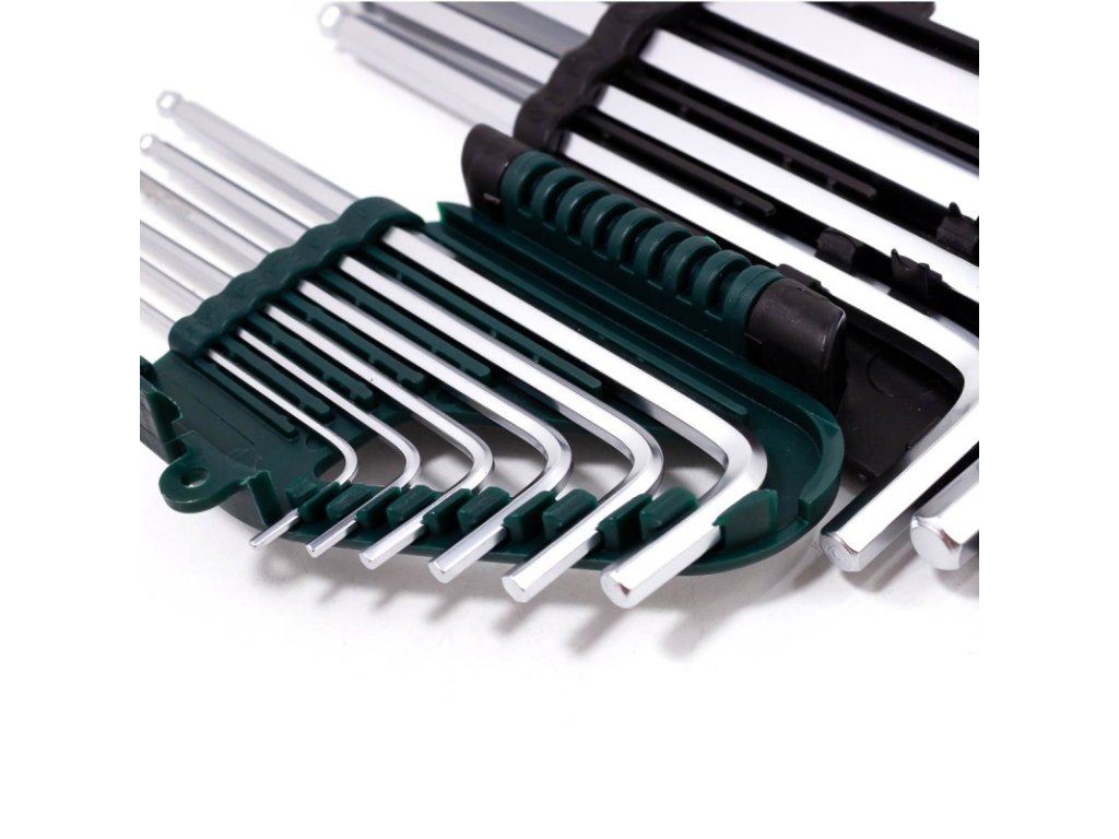 Un set de chei hexagonale cu capete sferice, concepute în principal pentru strângerea și slăbirea găurilor și piulițelor hexagonale precise și mici.