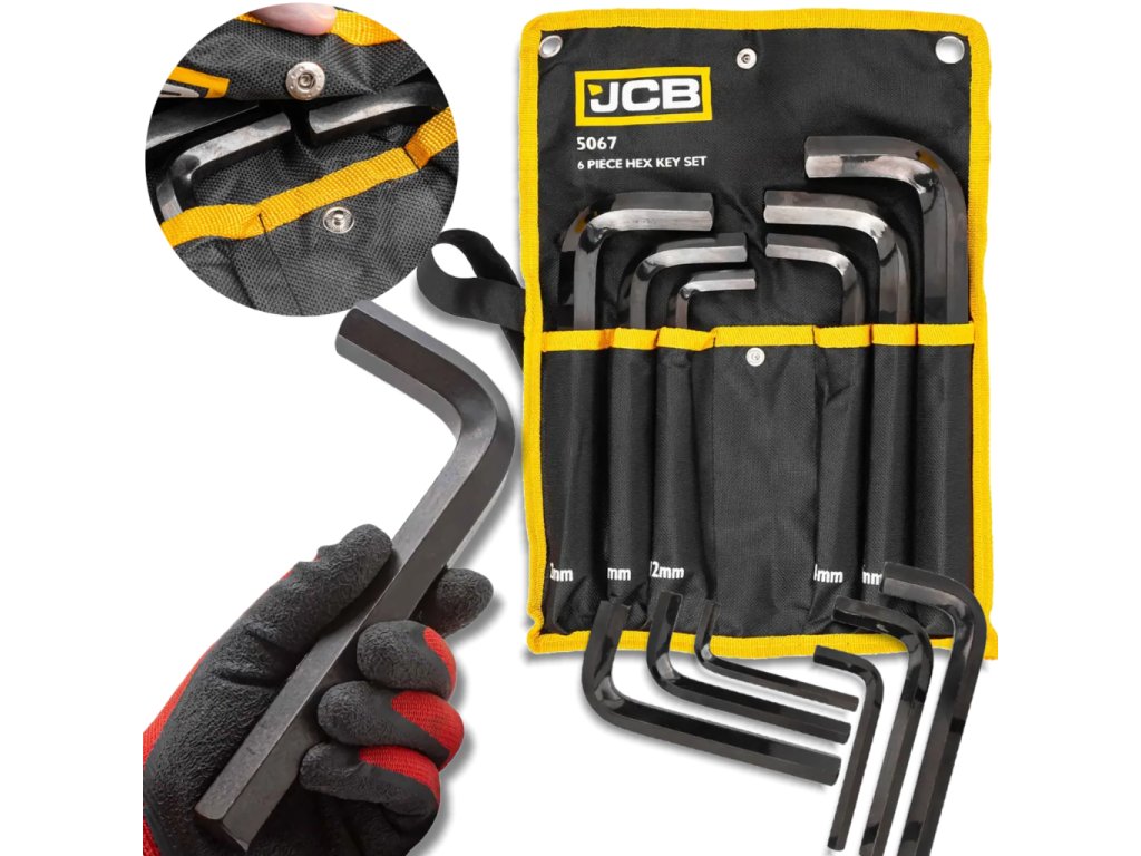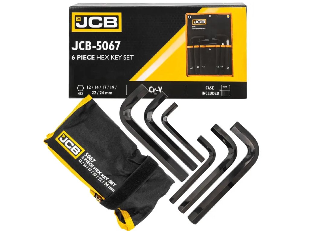 Set chei Allen JCB 6 bucăți, tip L, 12–24 mm, Cr-V, în suport