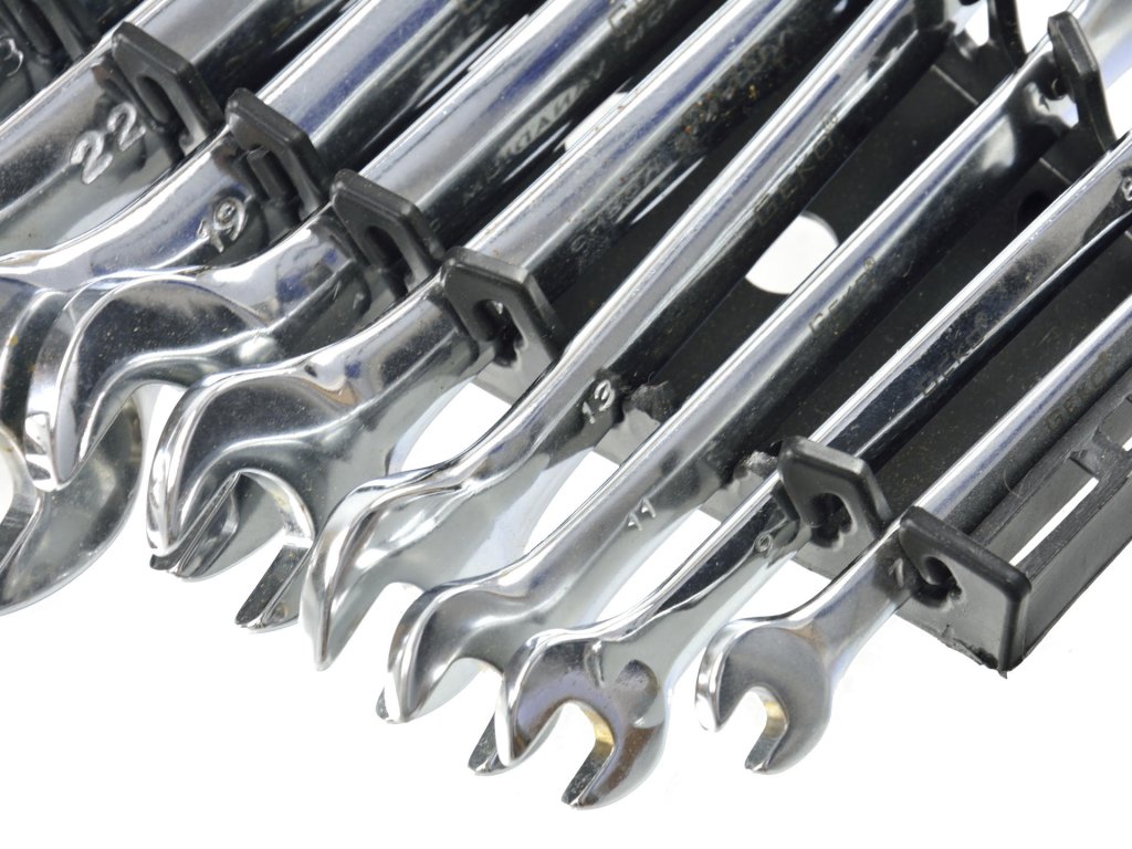 Set chei combinate lustruite 6-32mm, 12buc (8) - G11345 oferă o gamă de dimensiuni de la 6 la 32 mm. Cheile sunt fabricate din oțel crom-vanadiu (CrV) de înaltă calitate, garantând astfel durabilitatea și longevitatea lor. În plus, acestea sunt depozitate într-un toc practic din plastic, ce poate fi ușor agățat pe perete.