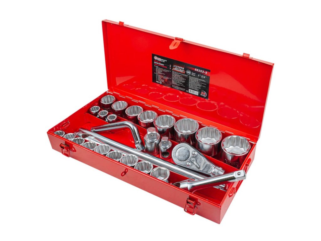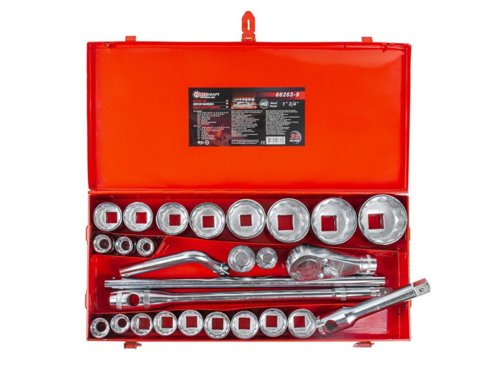 Set de chei tubulare, chei tubulare și clichete 3/4" cu 12 vârfuri, 26 buc., în cutie