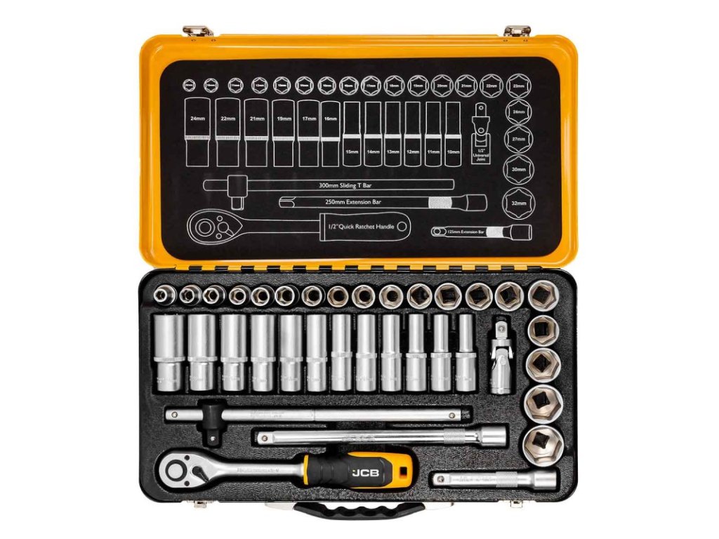 Set chei tubulare 1/2" 36 buc. în cutie cu clichet, pentru biciclete, JCB