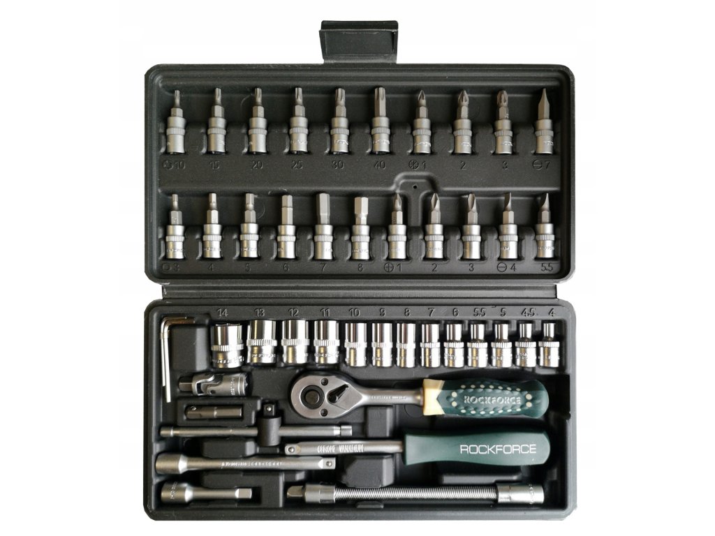 Setul include un clichet cu mecanism durabil și o gamă largă de chei tubulare (dimensiuni de la 4 la 14 mm) și biți (plați, în cruce, hexagonali, Torx).