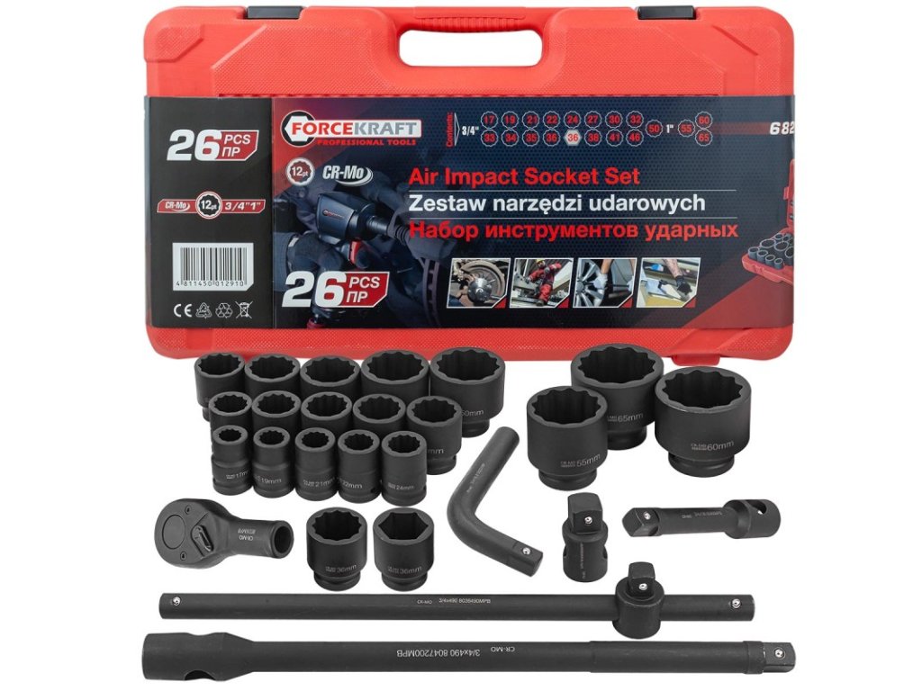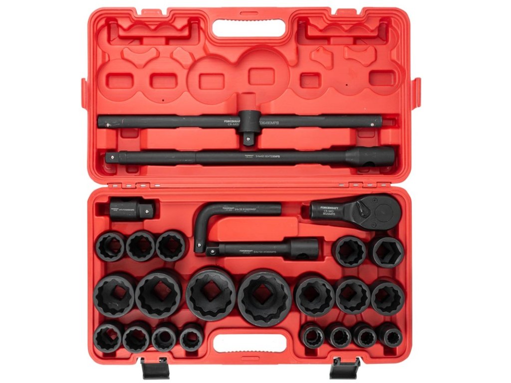 Set chei tubulare de impact 3/4" și 1", 12 vârfuri, 26 de piese