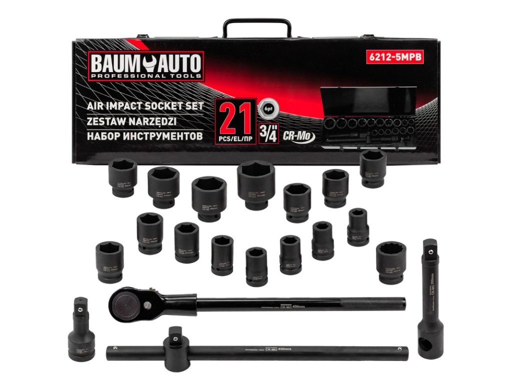 Set chei tubulare de impact cu 21 de piese 3/4" cu 6 vârfuri 17-50 mm în cutie