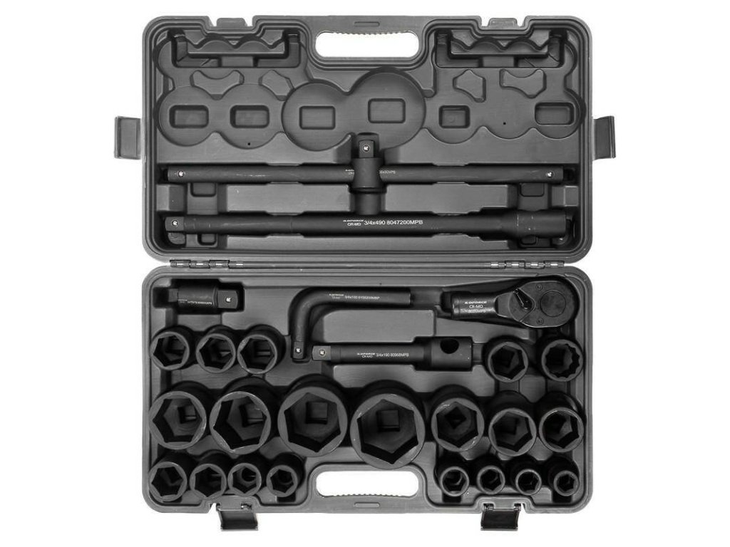 Set chei tubulare de impact cu 26 de piese – 3/4" (17–50 mm) + 1" (55–65 mm), cu 6 vârfuri