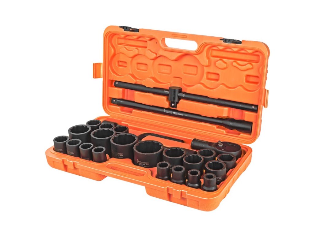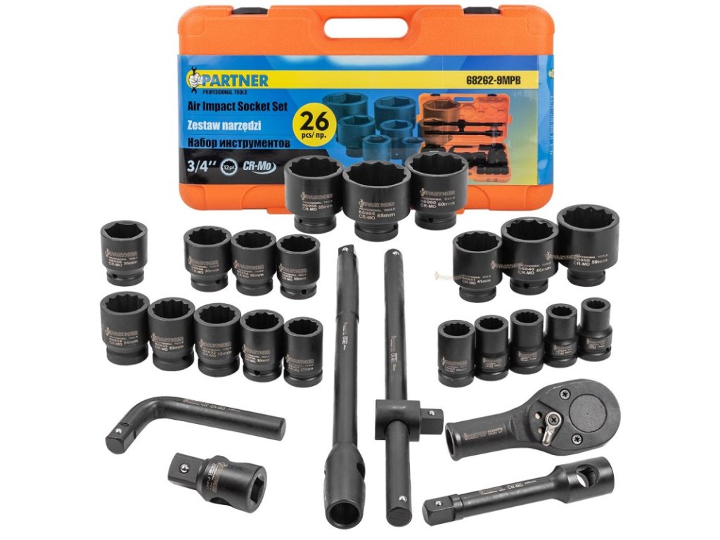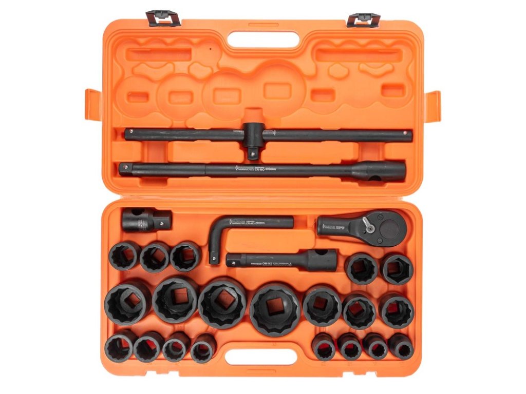 Set chei tubulare de impact cu 26 de piese 3/4" cu 12 vârfuri 17-65 mm, în cutie