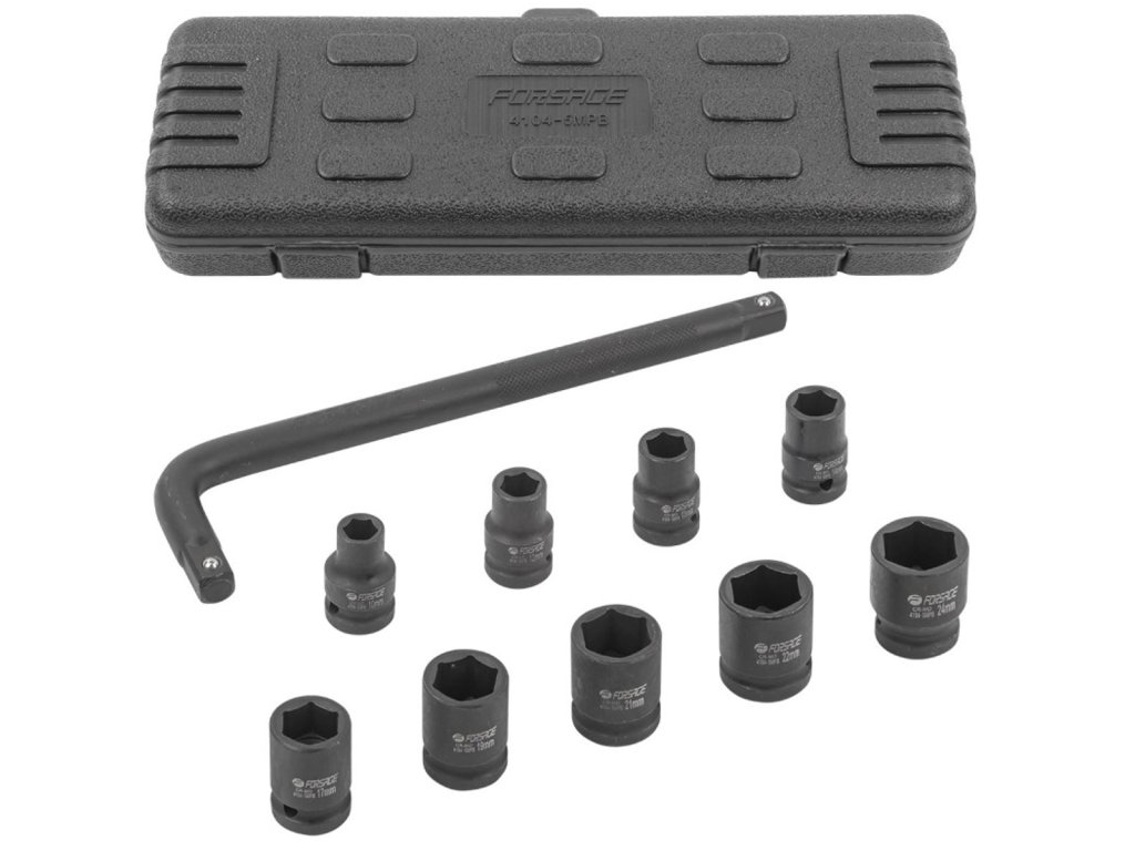 - Chei tubulare de impact: 10, 12, 13, 14, 17, 19, 21, 22, 24 mm (9 buc.)
