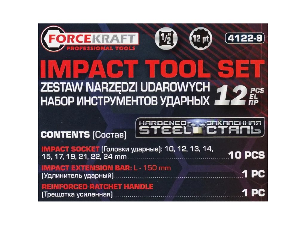 Set chei tubulare de impact FORCEKRAFT 12 buc, 1/2" + cutie