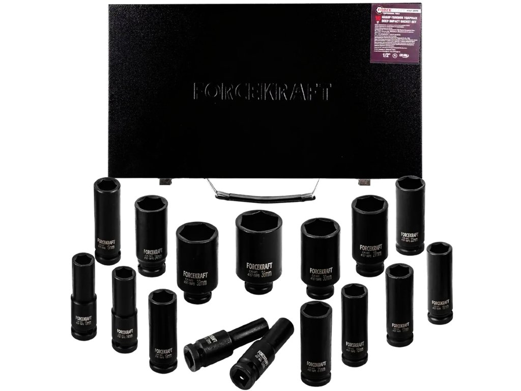 Set chei tubulare de impact FORCEKRAFT extinse 1/2" 16 buc 10–36 mm