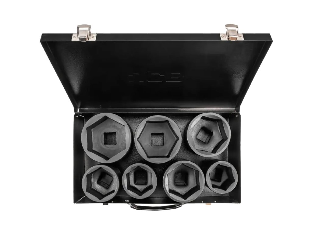 Set chei tubulare de impact JCB 1" Cr-Mo cu 6 puncte, 7 bucăți, 46-75 mm