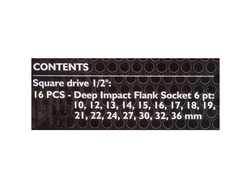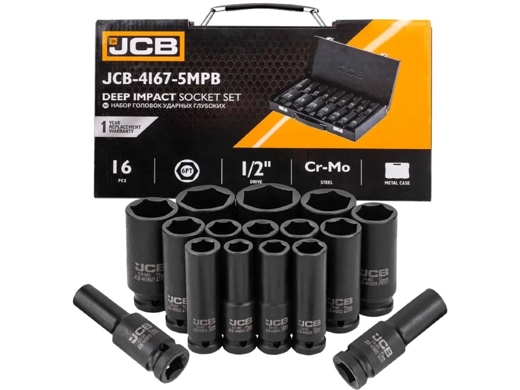 Setul de 16 chei tubulare de impact adânci JCB Tools JCB-4167-5MPB este o unealtă profesională concepută pentru lucrări solicitante în atelier, inclusiv asamblarea și dezasamblarea șuruburilor și piulițelor folosind chei de impact.