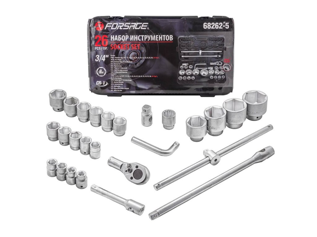 - Chei tubulare hexagonale de 3/4" - 17 bucăți: 17 mm, 19 mm, 21 mm, 22 mm, 24 mm, 27 mm, 30 mm, 32 mm, 33 mm, 34 mm, 35 mm, 36 mm (36 mm - 12-Hex), 38 mm, 41 mm, 46 mm, 50 mm