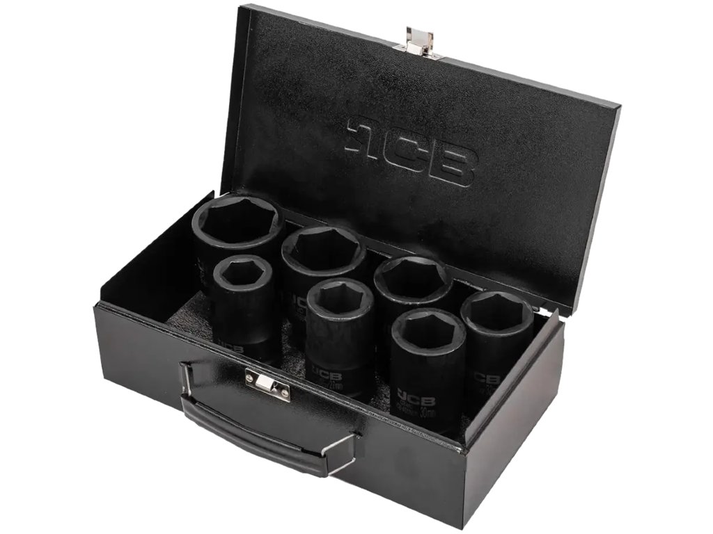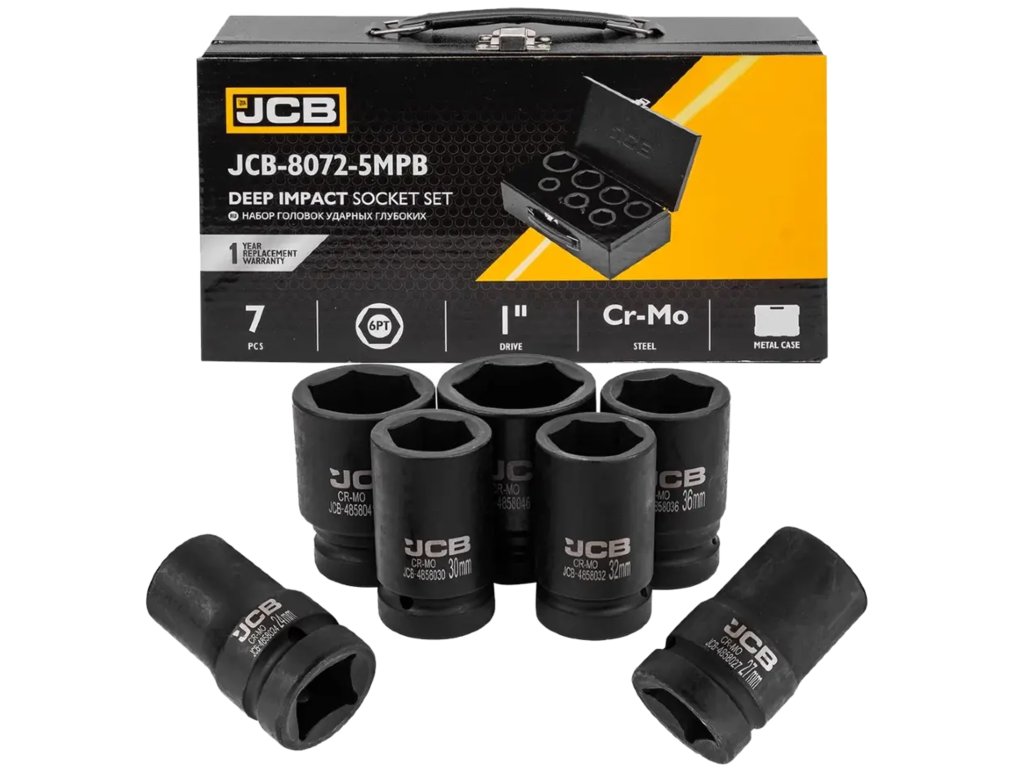 Set chei tubulare JCB cu impact adânc, 1" cu 6 vârfuri, Cr-Mo, 7 bucăți (24-46 mm)