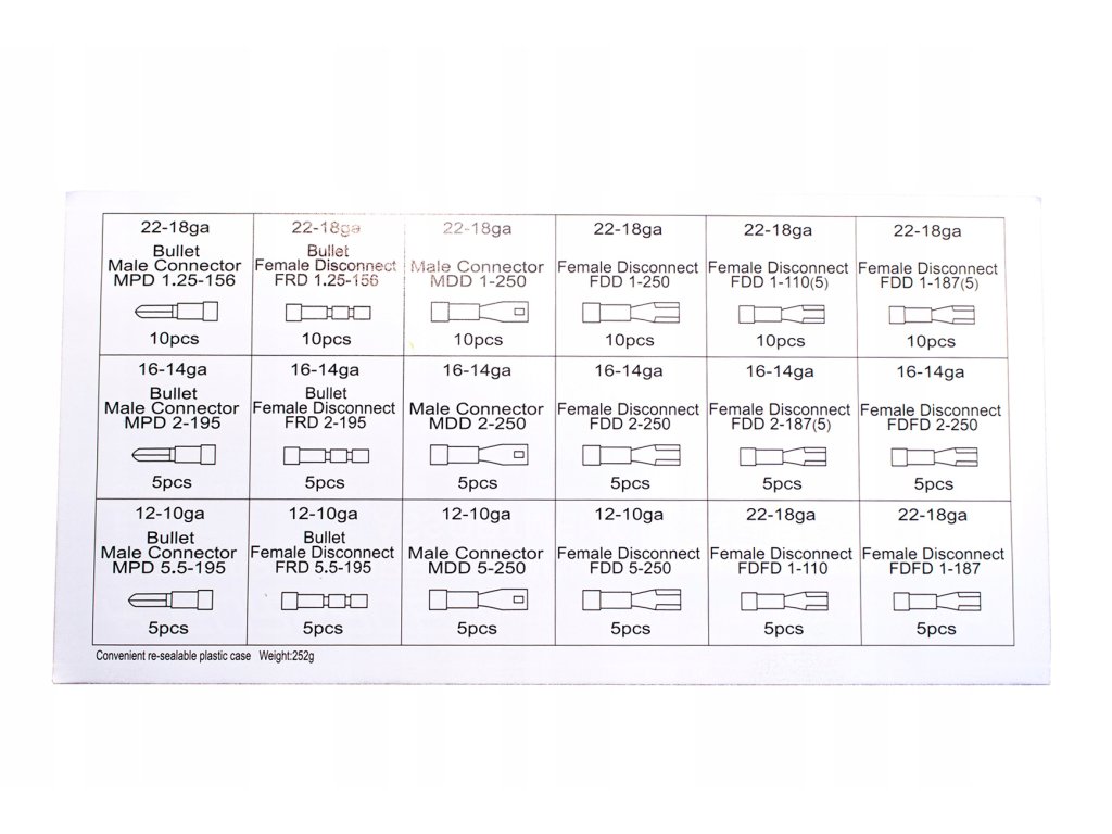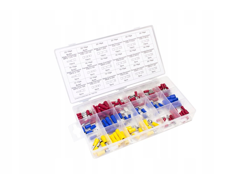 Conectorii sunt sortați și etichetați. Setul include diferite dimensiuni pentru utilizare universală.