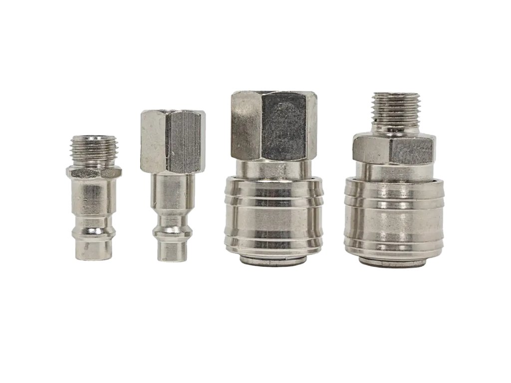 Setul profesional de cuplaje pneumatice rapide de 1/4" este o soluție fiabilă pentru fiecare atelier, service sau utilizator care lucrează cu scule pneumatice. Setul include 4 piese care permit conectarea rapidă și strânsă a furtunurilor la scule sau dispozitive.