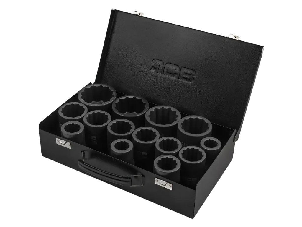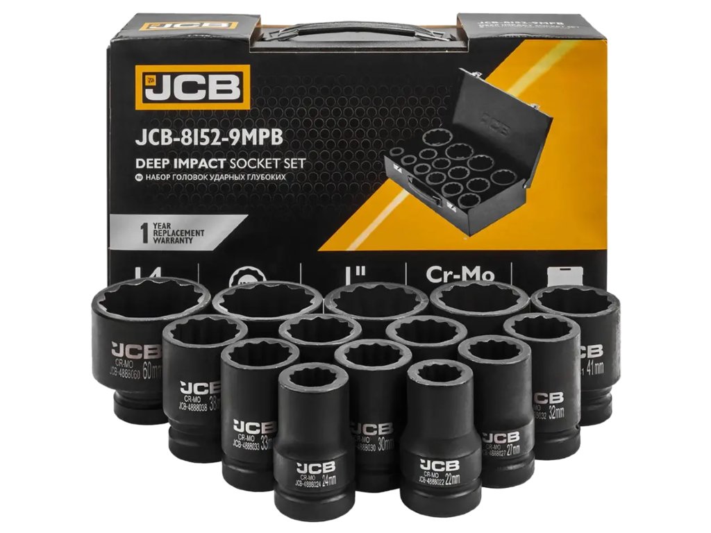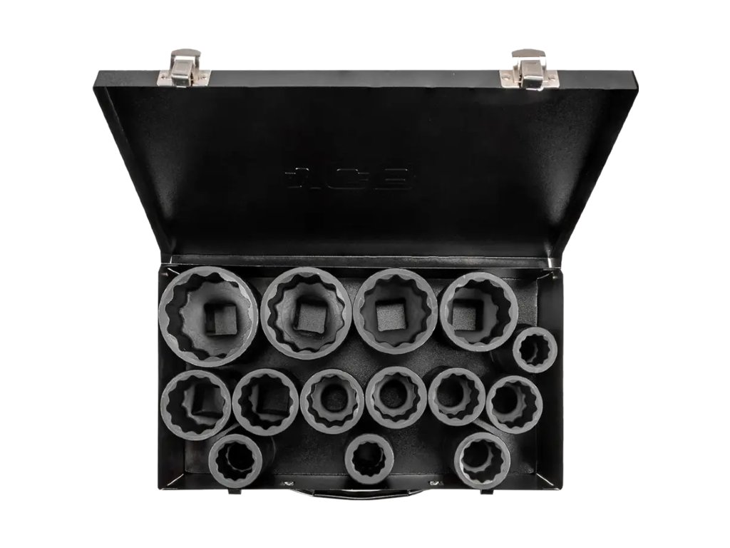 Set de 14 chei tubulare de impact JCB, 1", 12 vârfuri, Cr-Mo