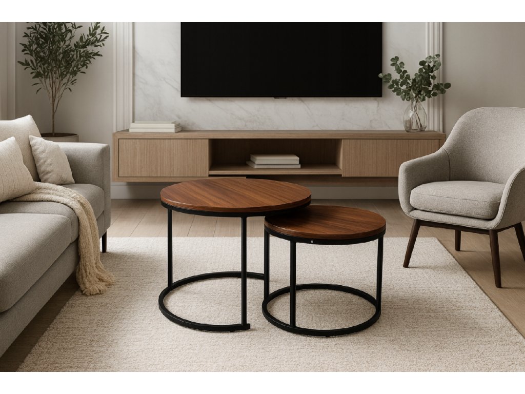 Acest set elegant și practic de două măsuțe de cafea combină designul modern cu funcționalitatea ridicată. Măsuțele mai mare și mai mică se completează perfect - pot fi folosite împreună sau separat. Suprafața adaugă o notă sofisticată interiorului, în timp ce construcția solidă din metal asigură stabilitate și durabilitate. Ideal pentru un stil de viață modern, scandinav și clasic.