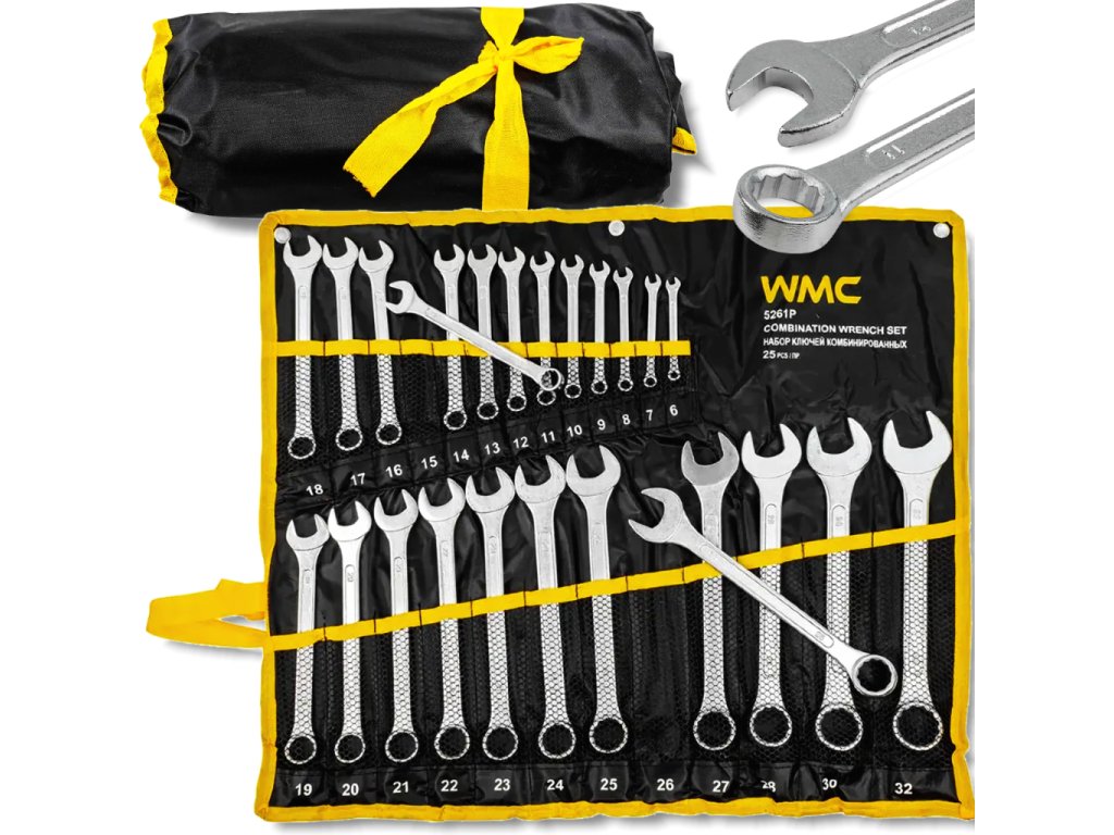Set de 25 de chei combinate WMC în cutie cu roți 6–32 mm, Cr-V
