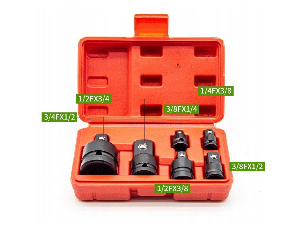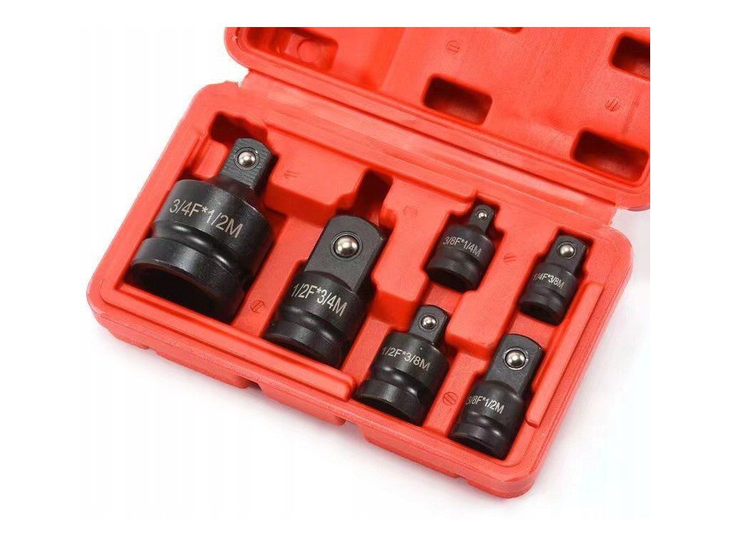 Acest set de adaptoare reductoare contine 6 piese de dimensiuni diferite, care sunt un instrument esential pentru utilizarea profesionala in atelierele si atelierele de reparatii auto. Reducerile sunt realizate din otel crom-vanadiu (Cr-V) , ceea ce asigura o rezistenta ridicata si o durata lunga de viata a sculelor. Setul este potrivit pentru o gamă largă de utilizări în reparații și întreținere.