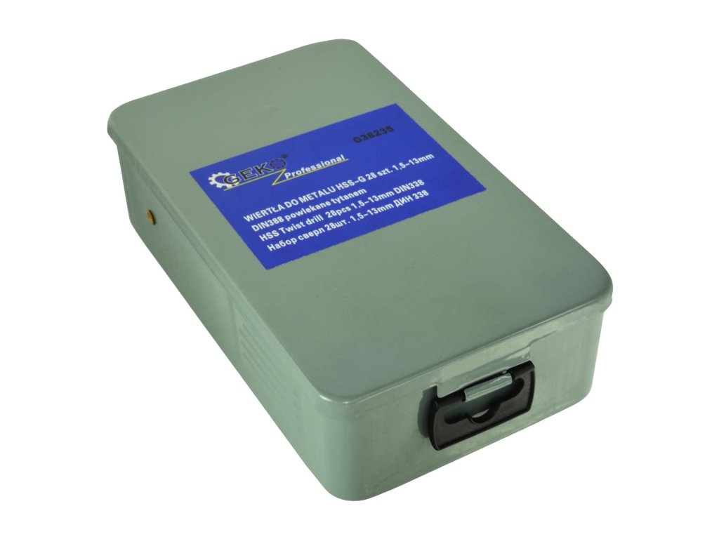 Set de burghie 28 buc 1,5 mm-13 mm HSS TiN GEKO Profi cu cutie metalică G38235