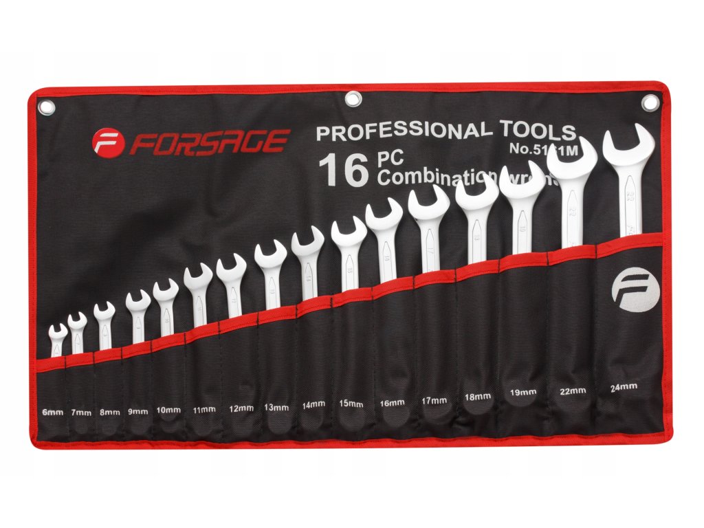 Set de chei combinate 6–19, 22, 24 mm, 16 buc., CrV — FORSAGE