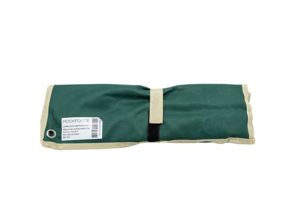 Set de chei inelare plate din oțel CrV , ambalate într-un covoraș textil cu găuri pentru agățare pe perete.