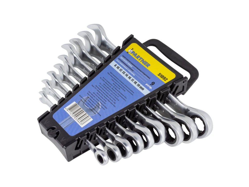 Set de chei combinate cu clichet 8-19 mm, 9 buc.