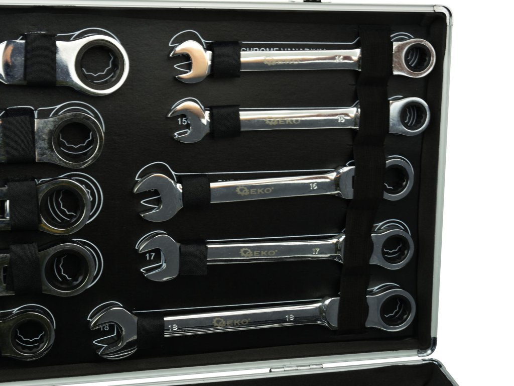 Set de chei cu cheie clichet 22 piese 6-32mm G10342 este ideal pentru ateliere auto profesionale, dar și pentru garajele de acasă. Acest set extins de chei inelare plate, cu un mecanism clichet de 72 dinți, este fabricat din oțel crom-vanadiu rezistent (CrV).