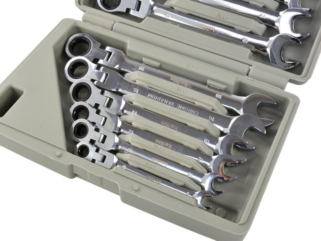 Set de chei cu clichet 8-19mm, 12 buc, casetă K00106 este fabricat din oțel crom-vanadiu (CrV) durabil. Aceste chei sunt ideale pentru utilizare în ateliere auto profesionale și garaje personale. Vin ambalate într-o casetă din plastic practică, care facilitează depozitarea și transportul.