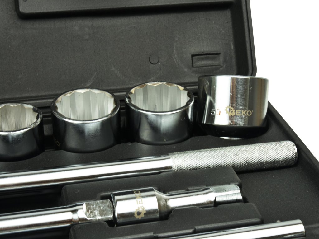 Sau set de chei tubulare marca GEKO este compus din 21 de piese și este ideal atât pentru utilizarea profesională, cât și pentru uz casnic. Acest set include o gamă largă de chei tubulare cu 12 colțuri cu dimensiune de 3/4", un mâner în T robust (3/4"), un clichet fiabil (3/4") și, de asemenea, o setare de extensii (3/4").