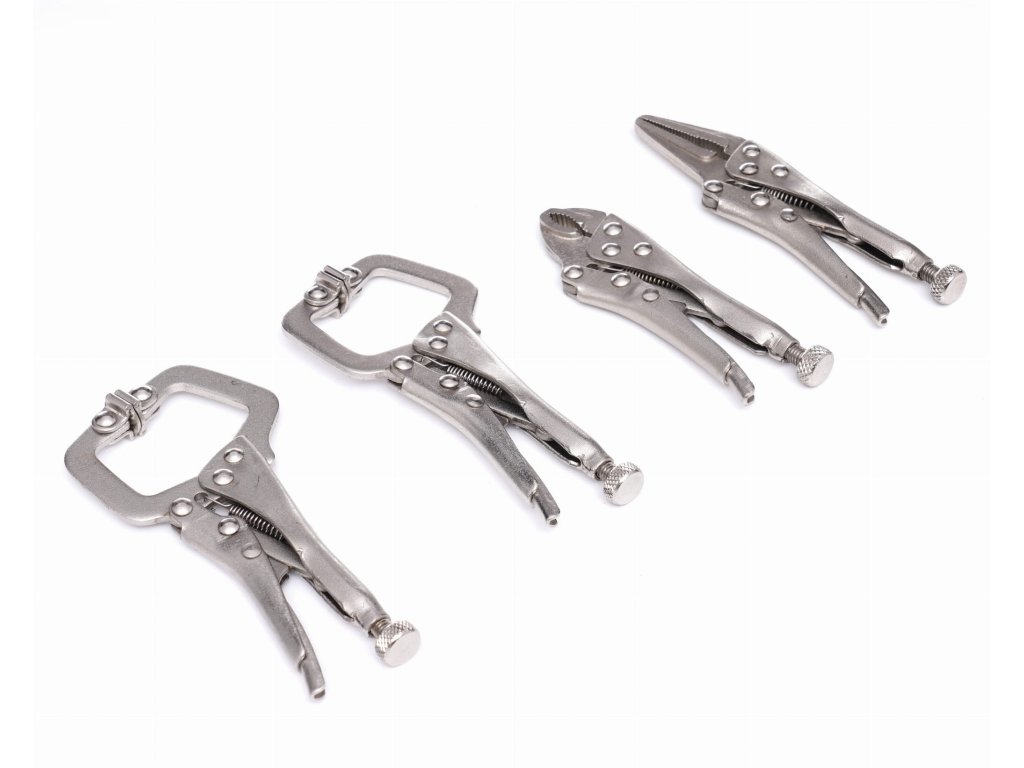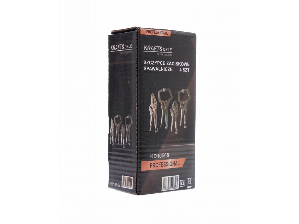 Clește de sertizat pentru sudură, 4 buc. KD10568, de înaltă calitate, marca renumită Kraft&Dele, facilitează prinderea rapidă a maxilarilor pe material. Foarte utile la sudură, montaj prin nituri sau găurire. Eliberarea prinderii se realizează printr-o pârghie specială.