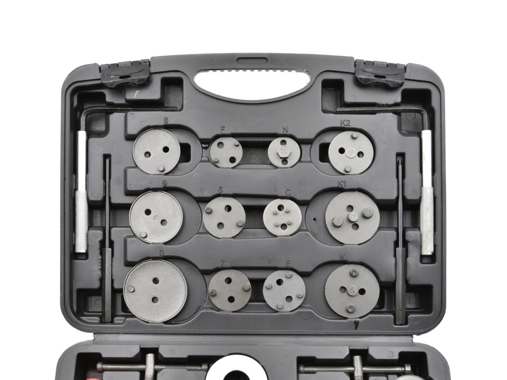 Set profesional de compresie și decomprimare a pistoanelor de frână cu 35 de piese este indispensabil la reparațiile automobilelor echipate cu frâne cu disc. Acest set este compatibil cu majoritatea mașinilor de pe piață, inclusiv cu mărci precum Audi, Fiat, Ford, Isuzu, Honda, Jaguar, BMW, Mercedes Benz, Mitsubishi, Nissan, Toyota, Renault, Volvo, Citroen, Opel, SAAB, GM și VW.