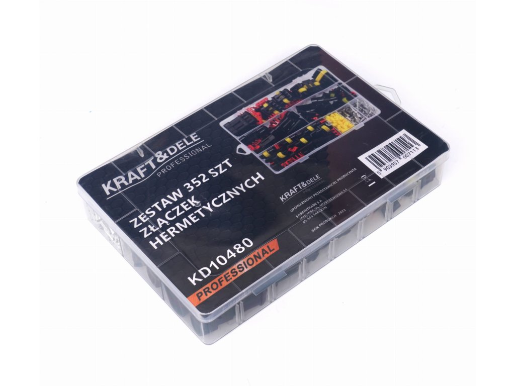 Set de cuplaje ermetice marca Kraft&Dele, model KD10480, potrivit pentru cele mai utilizate diametre ale conductoarelor electrice. Folosit frecvent în industria auto, de exemplu pentru senzori și dispozitive în mașini. Se utilizează și în rețele electrice și aparate electrocasnice.