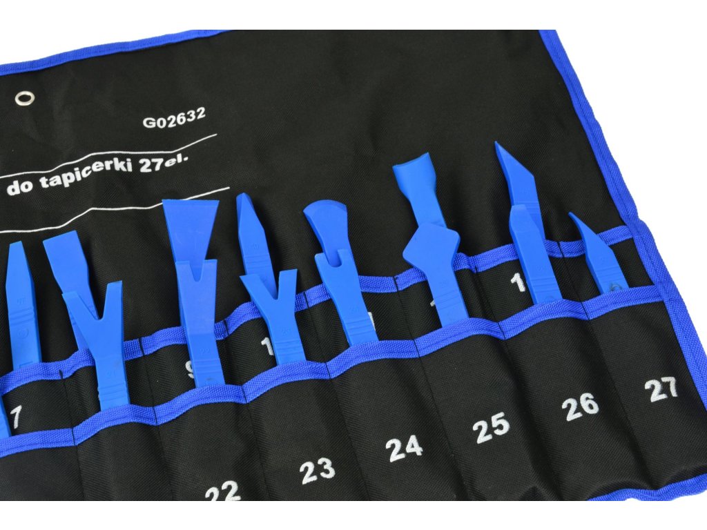 Set de extractoare pentru tapițerie 27buc G02632 este un set practic de unelte realizat din nailon întărit. Acest material asigură o rezistență ridicată și o durată lungă de viață.