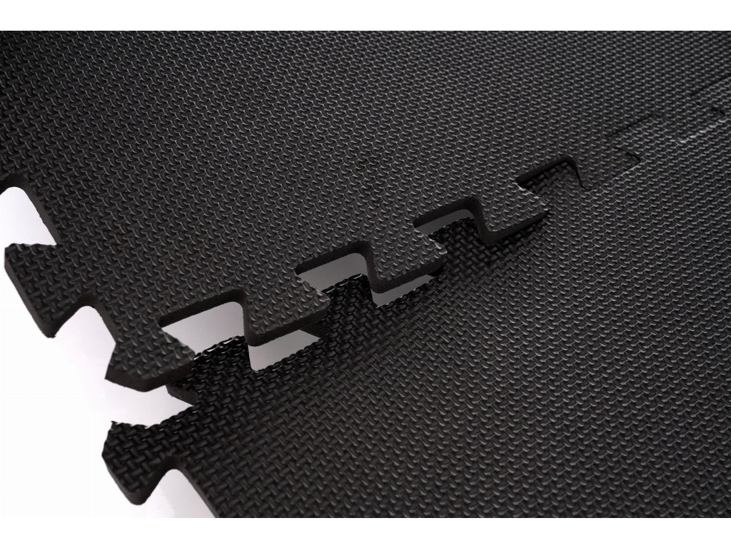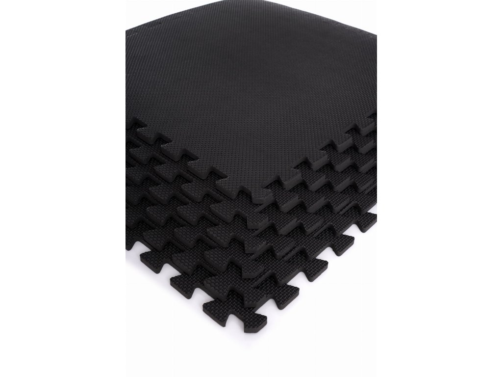 Fiecare bucată de burete are dimensiunile 60 x 60 cm și grosimea de până la 1 cm, ceea ce izolează bine de podea și amortizează căderile. O parte a covorașului are o suprafață antiderapantă, care asigură siguranța în timpul exercițiilor. Stabilitatea covorașului este asigurată de partea cu suprafață netedă. Fabricat din spumă EVA de înaltă calitate.